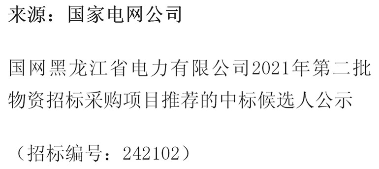 迈峰电力中标国网黑龙江2021年第二批物资招标采购
