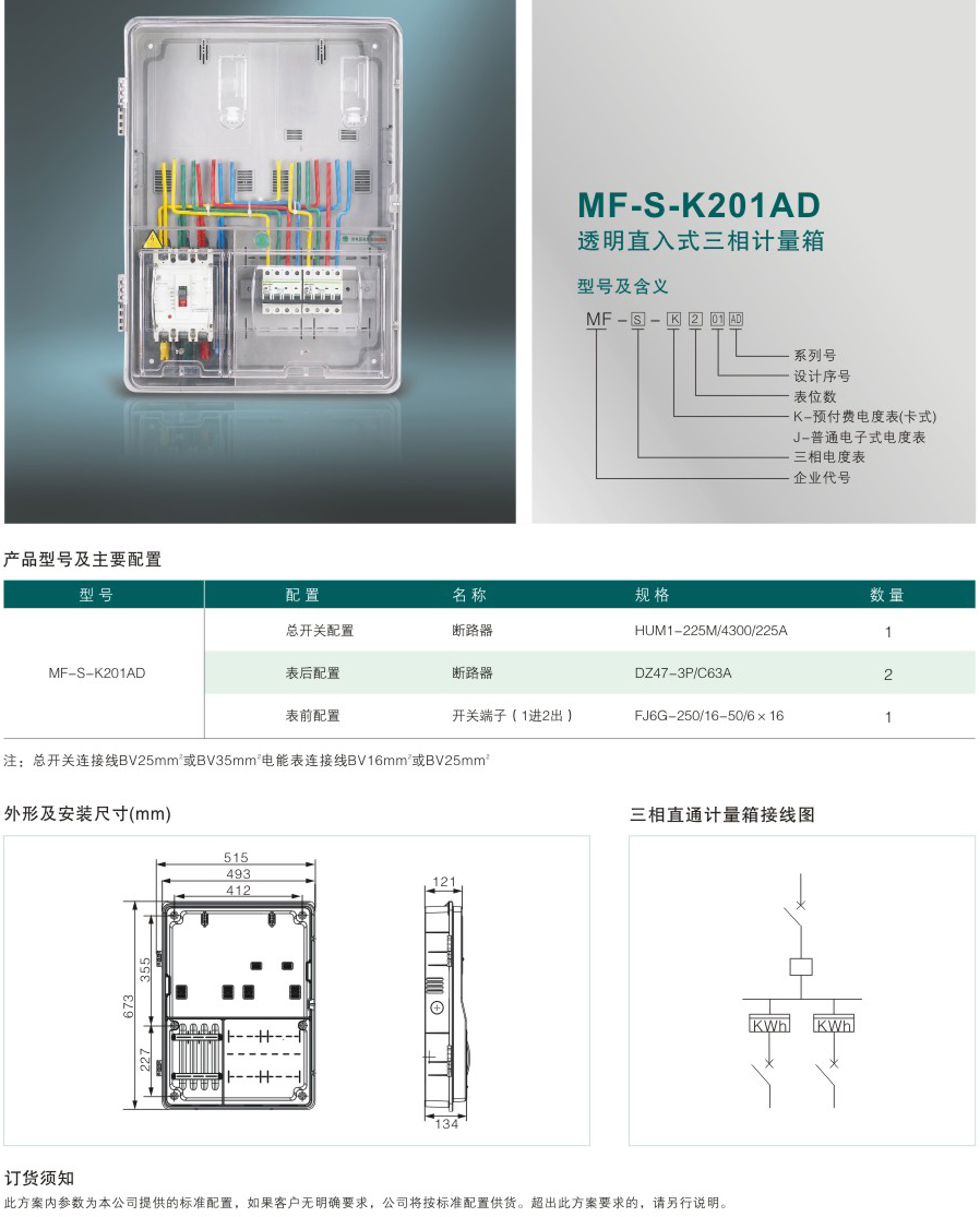 MF-S-K201AD 透明直入式三相计量箱