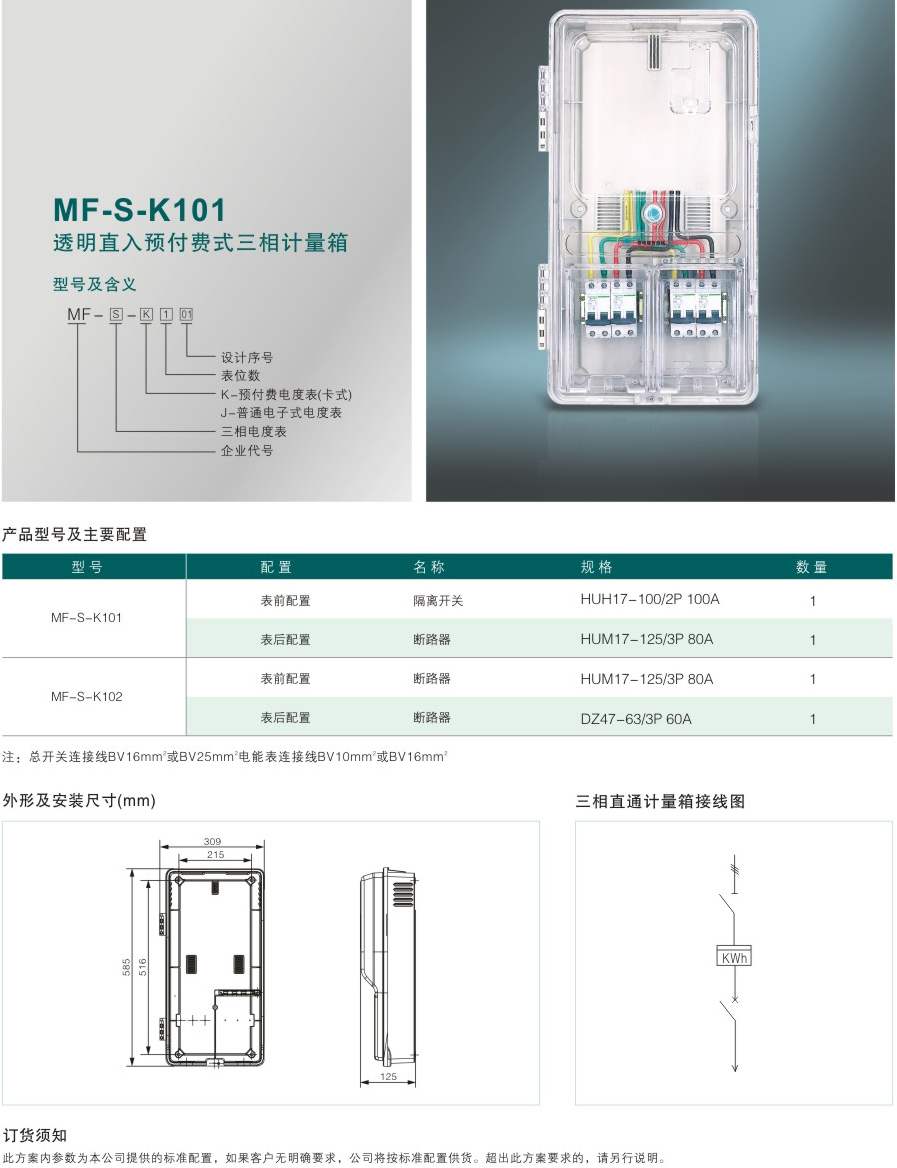 MF-S-K101FJ 透明直入预付费式三相计量箱