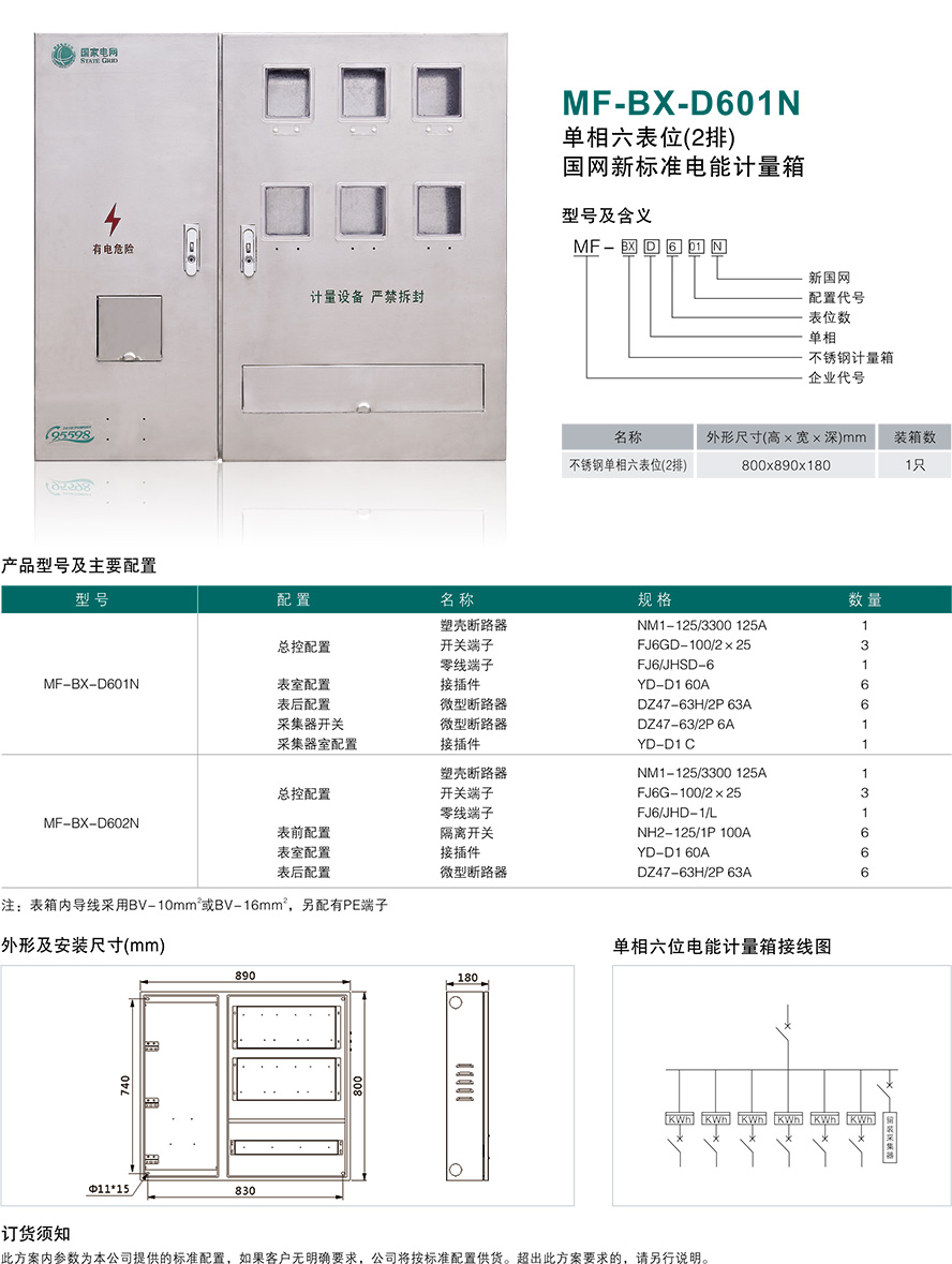 MF-BX-DL601N单相六表位(3排)国网新标准电能计量箱