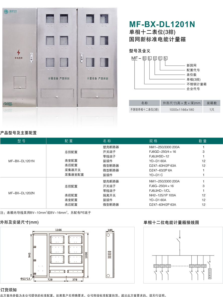 MF-BX-DL1201N单相十二表位(3排)国网新标准电能计量箱