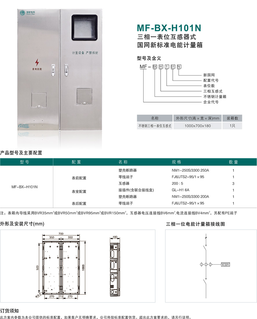 MF-BX-H101N三相一表位互感器式国网新标准电能计量箱