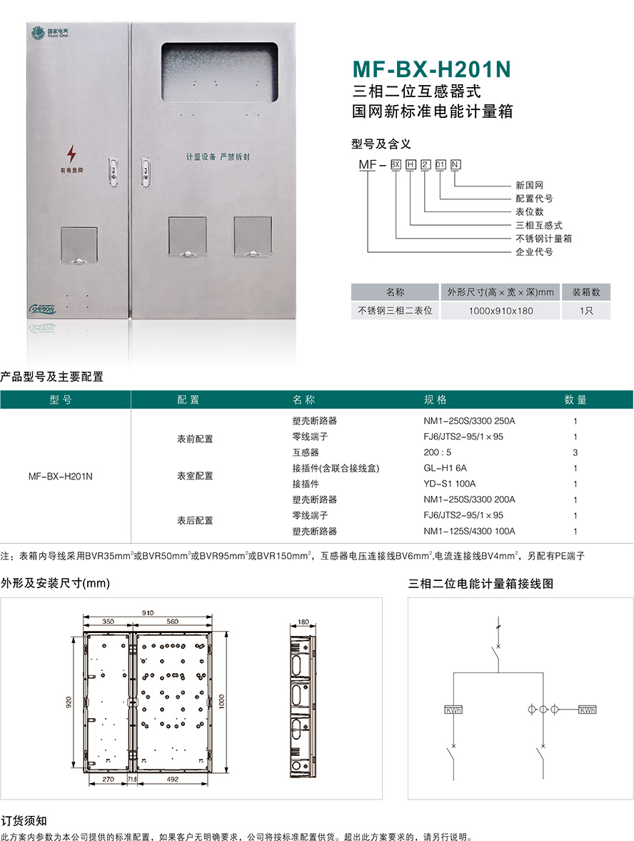 MF-BX-H201N三相二位互感器式国网新标准电能计量箱